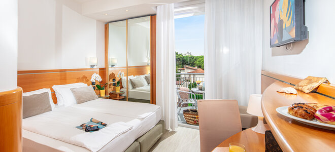 Exklusives Hotel, eingebettet im charmanten Stadtteil Pineta von Lignano Sabbiadoro und ca. 500 Meter vom Strand entfernt. Frühstücksrestaurant, Restaurant im benachbarten ****Hotel Rex, Lounge-Bar, Poolbar, Aufenthaltsraum, WLAN im gesamten Hotel verfügbar (kostenlos), Lift und kostenloser Fahrradverleih. Süßwasser-Swimmingpool, Sonnenterrasse, Solarium, Whirlpool. Strandservice mit 2 Liegen und 1 Sonnenschirm pro Zimmer. Klimatisierte Zimmer mit DU/WC, Föhn, Telefon, SAT-TV, WiFi, Safe, Minibar (gegen Gebühr) und Balkon. Ausgewogenes Frühstücksbuffet. 4-Gang-Abendessen mit Wahlmenü, Salat- und Gemüsebuffet im benachbarten Restaurant des ****Hotels Rex. Das ****Hotel Park ermöglicht Ihnen mit seinem einzigartigen Ambiente und seiner familiären Atmosphäre einen unvergesslichen Aufenthalt!